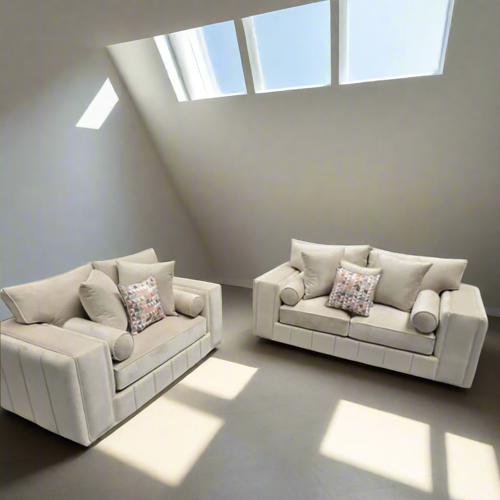 Upgrade your living room with the luxurious Royale Madrid 3 + 2 Sofa Set in elegant cream. This set boasts the superior quality of the Royale range, with showroom-worthy craftsmanship. Plus, enjoy additional comfort with the included extra cushion set. Elevate your space with this expertly designed and crafted sofa set.