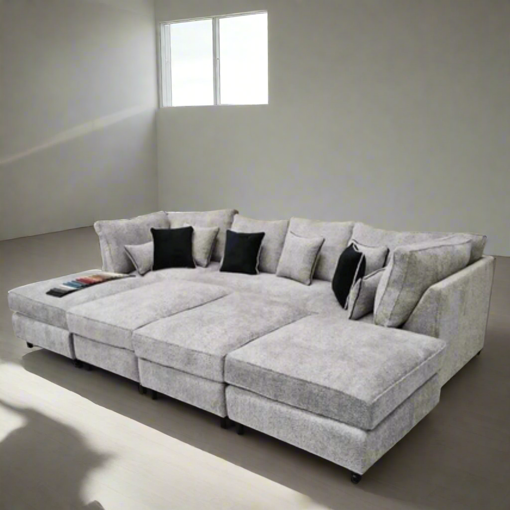 The Royale Cinema Sofa in Teddy Silver fabric is an unbeaten quality premium sofa, perfect for film nights and family gatherings. Enjoy ultimate comfort and style with this awesome cinema sofa.