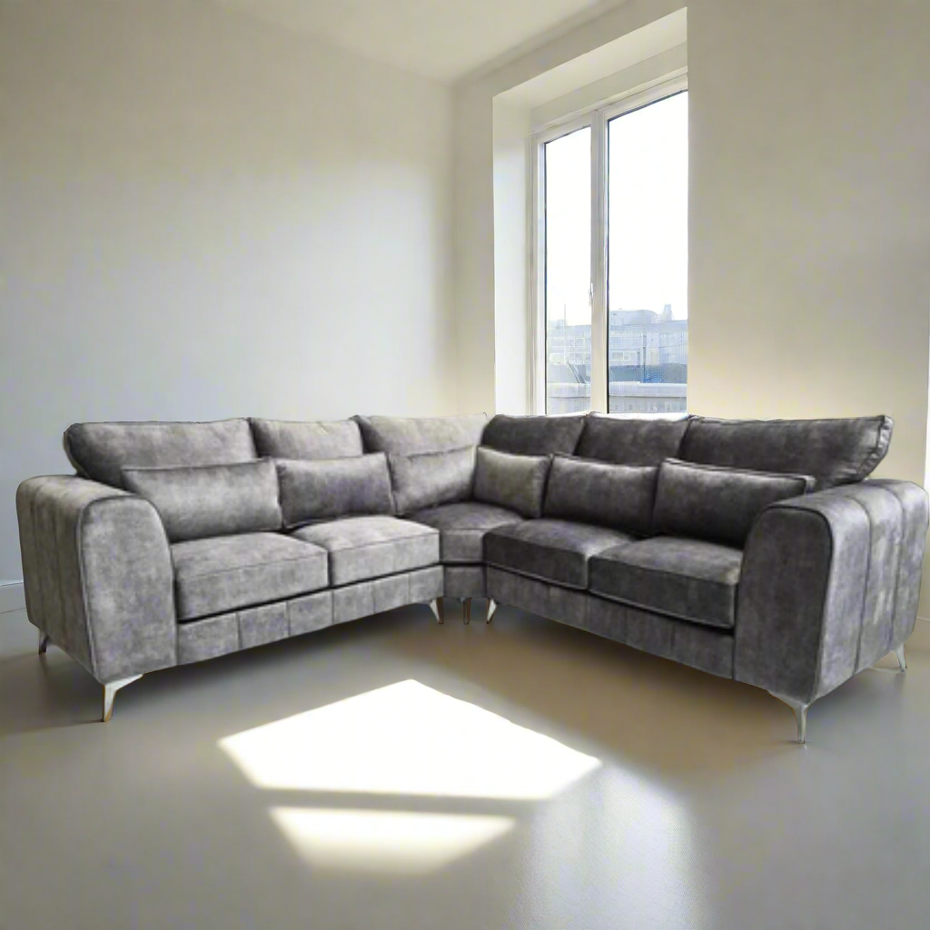 Introducing the Royale Cosmo Corner Sofa in Marble Grey from our premium range. Upgrade your comfort with upgraded foam throughout and add a touch of elegance to your living space. Experience the luxury of our awesome design.