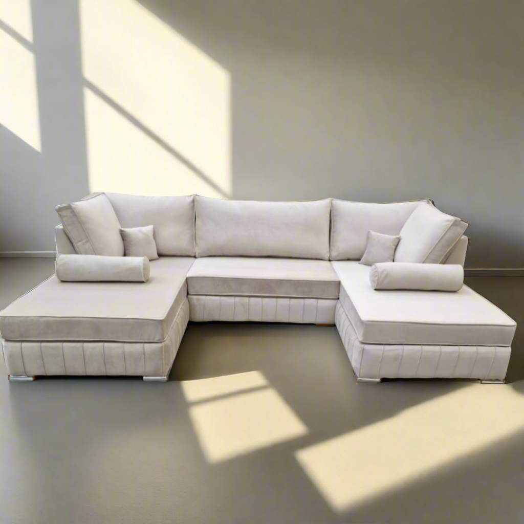 Introducing the Layla Hanco U Shape Sofa, a luxurious and comfortable addition to any living space. With its plush cream fabric and unique U shape design, this sofa offers both style and comfort. Perfect for lounging, entertaining, and relaxing after a long day.